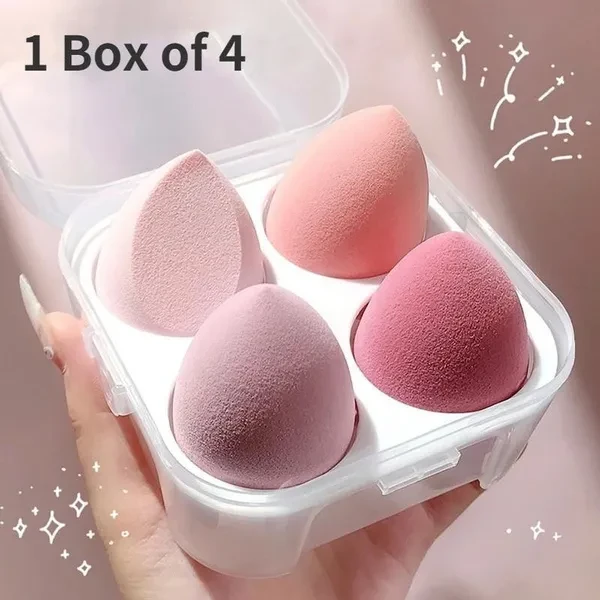1 Box of 4 Makeup Sponges Powder Puff Wet and Dry Combination Beauty Makeup Ball Foundation Puff Bevel Cut Makeup Sponge Tool
