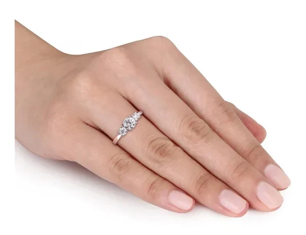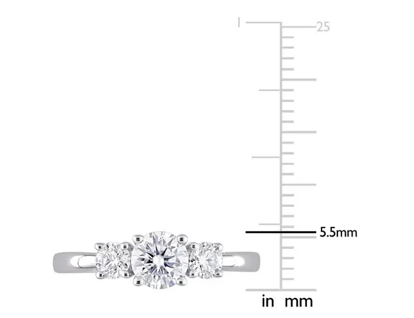 1.00 Carat (ctw) Lab Created Three Stone Moissanite Engagement Ring in Sterling Silver This extraordinary three-stone engagement ring is crafted in lustrous sterling silver. This magnificent wedding ring features three round-cut created white moissanite gemstones. Enhanced with a high polish finish, this gorgeous bridal ring is a valuable addition to any jewelry collection. Pair it with your favorite casual, professional, or dressy outfit and look gorgeous. Beautifully crafted in 0.925 sterling silver with a Polished Finish Stone Type: Moissanite; Color: White; 0.344 CTW; Quantity: 2; Brilliant Cut; Round Shape; Dimensions: 3.5 mm; Lab Created; Prong Setting Stone Type: Moissanite; Color: White; 0.65 CTW; Quantity: 1; Brilliant Cut; Round Shape; Dimensions: 5.5 mm; Lab Created; 4-Prong Setting This item ships in signature jewelry box packaging, ready for gift-giving with a classic, elegant look and feel This Engagement Ring is the perfect gift for any bridal engagement, wedding, birthday, anniversary, holidays, thank you, thinking of you, or for any reason at all SKU: 68DLG1004901MOI-P
