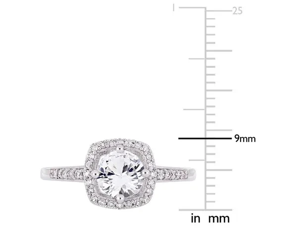 1.00 Carat (ctw) Lab Created White Sapphire Halo Engagement Ring in 10K White Gold with Diamonds This stunning halo ring is crafted in lustrous 10-karat white gold and features a stunning 1.00 carat lab created white sapphire at the centre and dazzling diamonds in a halo and halfway along the band. Enhanced with a striking finish this ring will make her gleam with happiness. Pair this ring with any ensemble for a polished look. Beautifully crafted in 10k white gold with a Polished Finish Stone Type: Sapphire; Color: White; 1.01 CTW; Quantity: 1; Brilliant Cut; Round Shape; Lab Created; Pave Setting Stone Type: Diamond; Color: H-I; Clarity: I2-I3; 0.016 CTW; Quantity: 2; Single Cut; Round Shape; Natural Sapphire Gemstone is the Birthstone for the Month of September This Diamond Engagement Ring is the perfect gift for any bridal engagement, birthday, anniversary, holidays, thank you, thinking of you, or for any reason at all SKU: 08DLG1003998CWSAW-P