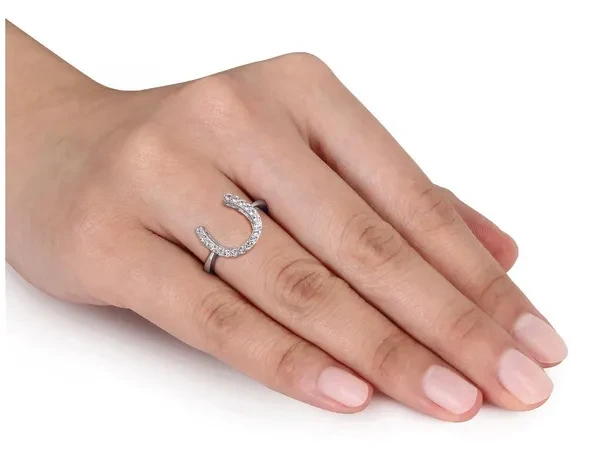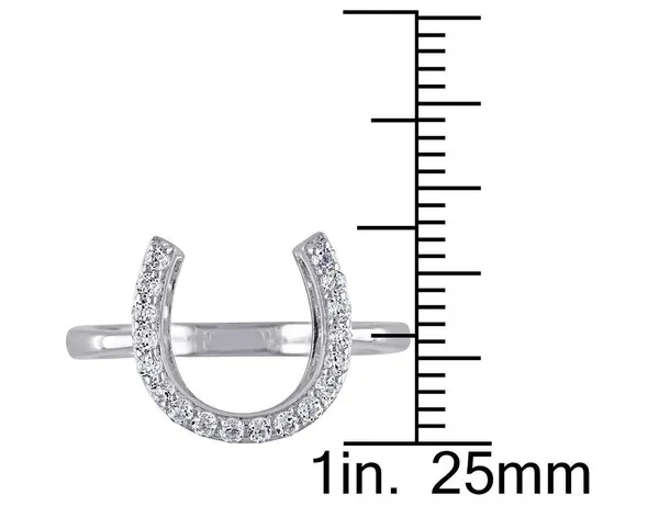 1/2 Carat (ctw) White Topaz Horseshoe Ring In Sterling Silver Prong-set white topaz gemstones inlay the horseshoe centerpiece of this luminous ring, forming a resplendent channel along its contour. Highly polished sterling silver forms a lustrous frame for the horseshoe, and provides a durable finish. Beautifully crafted in 0.925 sterling silver with a Polished Finish Stone Type: Topaz; Color: White; 0.54 CTW; Quantity: 18; Brilliant Cut; Round Shape; Dimensions: 1.5x1.5 mm; Natural; Prong Setting This item ships directly from the USA. If you are not completely satisfied, simply return for a 100% refund This item ships in signature jewelry box packaging, ready for gift-giving with a classic, elegant look and feel This Ring is the perfect gift for any birthday, anniversary, holidays, thank you, thinking of you, or for any reason at all SKU: 68DLG1001034WT-P