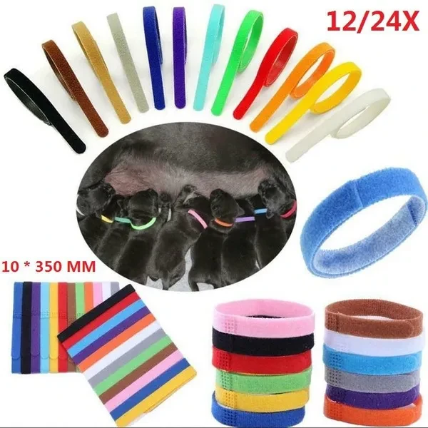 12/24pcs Dog Collars Nylon Pet Dog Tag Puppy Kitten Identification Collar Whelping ID Collar Bands for Dogs Cats Pet Supplies