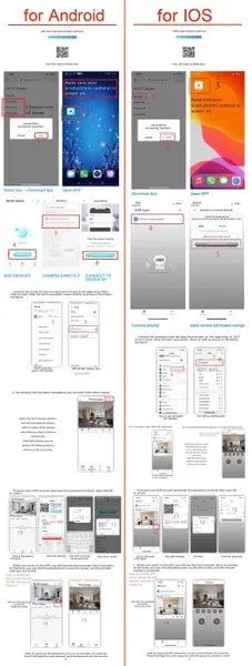 Scan the QR code on the instruction manual to download the APP Remember to charge the product first when you receive it. Press and hold the power on button ON/OFF and the red light will indicate that the device is turned on 1: Is the phone connected to the hotspot of the camera? Click on the wireless network settings of the phone and see the hotspot starting with the name "BA" of the camera? If you don't see it, you need to press and hold the mode button to reset it, and wait until the camera's hotspot name is displayed on the wireless network side of the phone: the name starting with "BA" to connect, 2: After connecting your phone to the camera, you need to log in to the app and set up the camera's built-in WiFi connection function to connect the camera to your home's wireless network, These steps have been completed before use