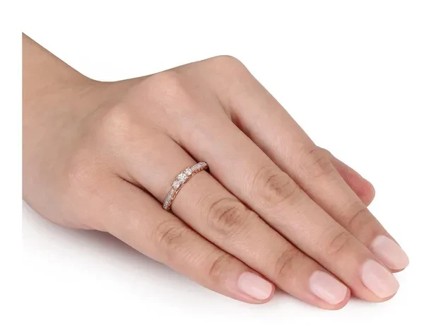 1/4 Carat (ctw) Three-Stone Diamond Ring 10K Rose Pink Gold