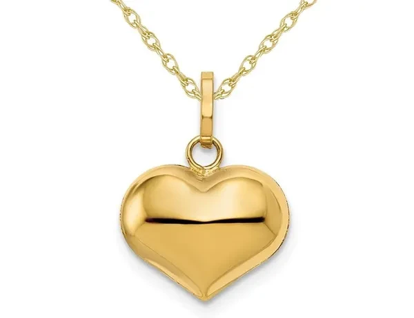 14K Yellow Gold Heart Pendant Necklace with Chain
