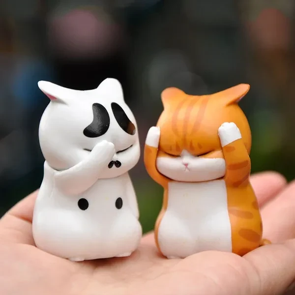 Pet Cat Figurines Model Toys Kawaii Unhappy Kitten Cat Figure Mini Animals Homecoming ornament Kid Xmas Gift Collection