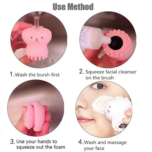 Product details This kind of octopus brush is made of environmentally-protective silicone material and is very soft. So it is not easy to got broken or cracked when using it in washing face. It has a cute shape and got popular with the young ladies who love beauties. It can help you clean the dirt under the faical pore. It is compact and easy to hold. It feels very comfortable. Material: Soft silicone material Style: cute octopus Color: Blue/Pink/ Green/ Rose red / purple( as the photo) Weight: 40g/ pcs Size: see as the photo Suitable for : girls /young ladies Package including: 1 piece/set