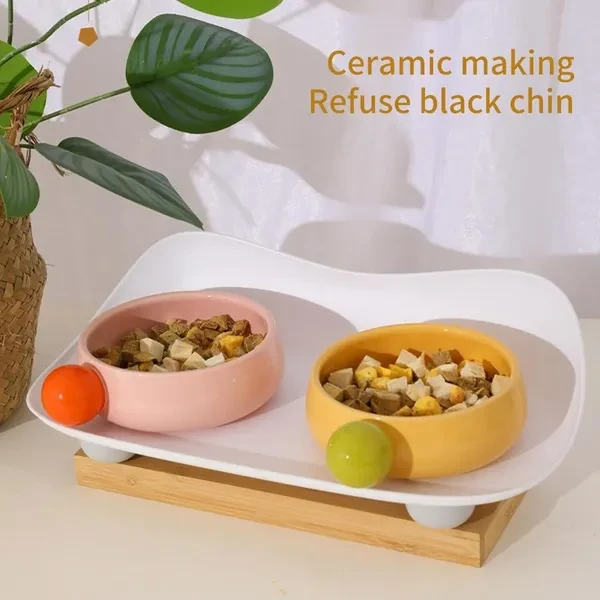 2-in-1 Dogs Feeder Raised Cat Food Water Bowl Food Waterer No-Spill Large Capacity Double Bowl Pet Supplies