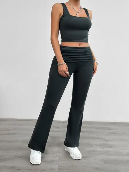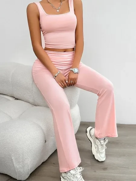 92% Viscose and 8% Elastane Material:This womens set is made of polyester, comfortable and skin friendly Design: Women's 2-piece suit, simple and stylish design, accentuate your tall figure, back button detail, high waist trousers Clothing care: Machine washable or hand wash, hang or line dry, do not bleach Occasion: Vest pants suit is suitable for casual, daily, family gathering, vacation, dinner date and other various occasions