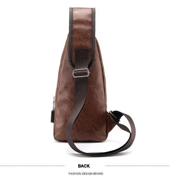Material: PU leather Size:chest bag(17x35x6cm) (Conversion: 1cm=0.3937 inch, 1inch=2.54 cm) Weight:chest bag:230g Packing include:1pc xbag It's perfect for walking/traveling/biking/hiking and everyday using The chest bag equipped with earphone hole and USB charging port which is very convenient. There is no power supply for the USB port Perfectly works as sling shoulder pack, wear this sling bag over either shoulder comfortably, or across the chest to deter thieves and keep your hands free There is spacious room for your daily essentials: umbrella, iPad mini only, cell phone, wallet, credit card, earphone and camer