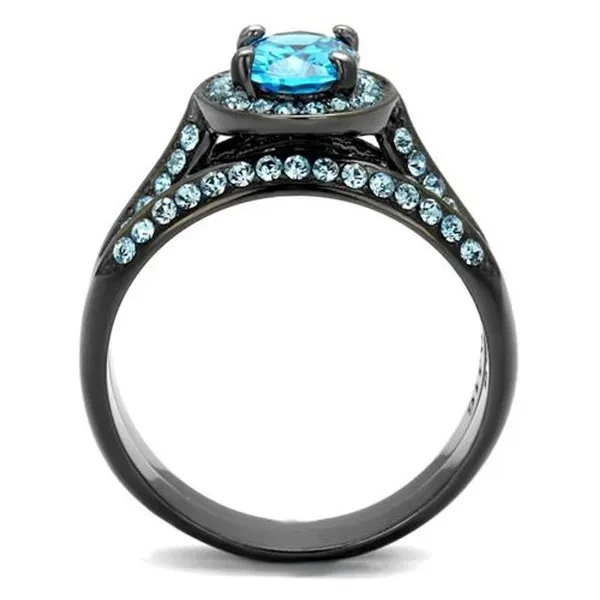 2.65 Ct Sea Blue Cz Halo Gray Stainless Steel Wedding Ring Set Women's Size 5-10