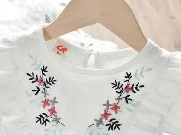 2Pcs Children Clothing Set Little Kids Girls Sleeveless Embroidery Shirt + Bowkont Shorts Baby Girl Outfits