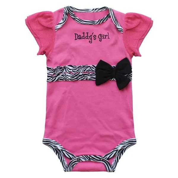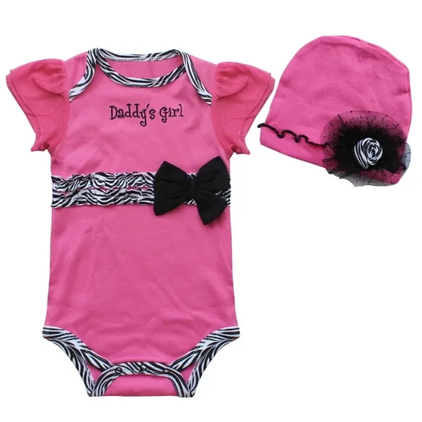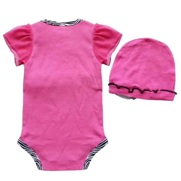 Set Include: 1pc Bodysuit, 1pc Cap Condition: New with tags Material: Cotton Color: Hot pink(As pictures shown) Features: Baby girl's cute bodysuit with beanie hat.Special neckline design, short mesh sleeves. Zebra pattern around the neckline and diaper part.Letters on chest, bowknot attached on zebra lines. Suitable for daily wear, party, birthday and so on.