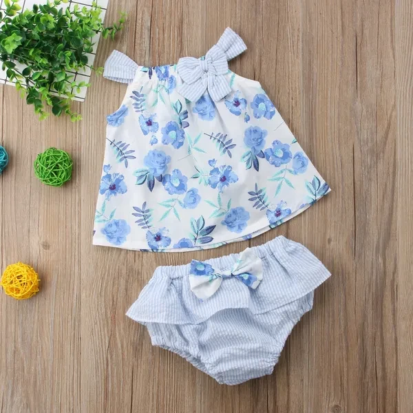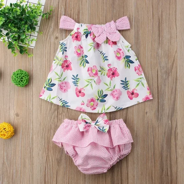 2Pcs Newborn Infant Kids Baby Girl Clothes Floral Top+Short Pants Outfits Set