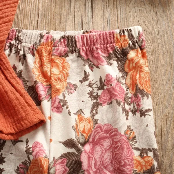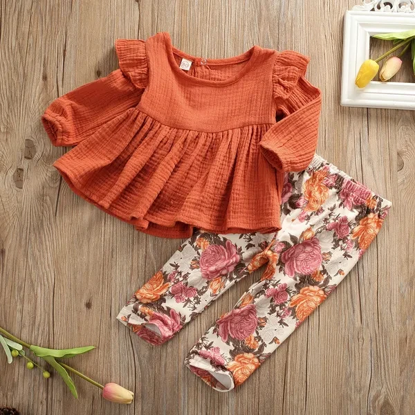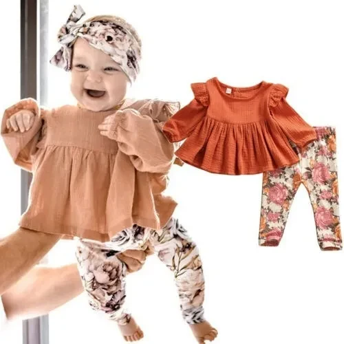 2PCS Newborn Toddler Baby Girls Autumn Outfits Ruffle Dress Top Floral Pants Leggings Clothes Set