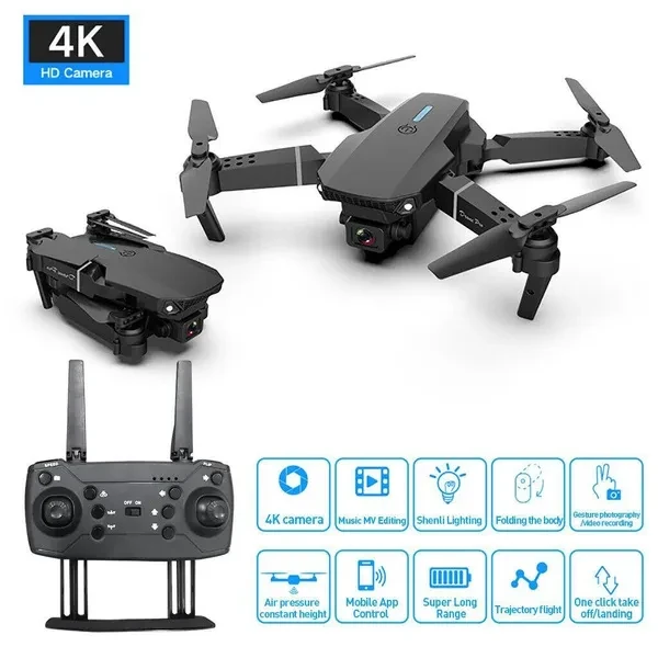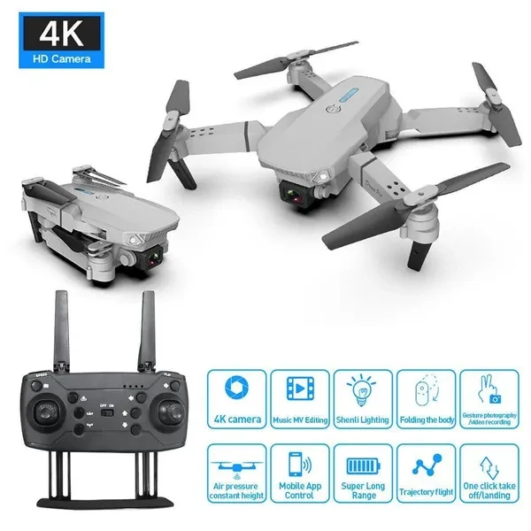 Product Name: 3 Electric Folding Drone HD 4K Aerial Photography Three Electric Material: ABS Weight: 410g Size: 25 * 25CM (unfolded size) 12.5 * 5.3CM (folded size) Features: 1. Foldable: Folding arm, small size, easy to carry. 2. Altitude maintenance: The altitude maintenance mode function provides stable flight, making it easier to control and take clearer aerial photos. 3. WiFi function: With WiFi function, it can connect to apps, APK systems for taking photos and videos, and transmit real-time images through mobile phone cameras. 4. HD Camera: Equipped with a 4K wide-angle camera, it can provide a wide range of high-definition images and videos. 5. Headless mode: In headless mode, there is no need to adjust the aircraft position before flying. 6. One click return: Drones can easily find their way back using the one click return function. 7.2.4G frequency: 2.4GHz transmitter power, strong anti-interference ability. 8. Flight speed: It has a three-level speed switch to make flying more fun. 9. High quality: The body of the quadcopter is made of high-strength wear-resistant engineering plastic, which is lightweight and durable. 10. Storage box packaging: Drones are stored in a protective box with precise compartments. Specifications: Color: Grey/Black Remote control frequency: 2.4GHz Remote control battery: 3x1.5V "AA" battery (not included) Drone battery: 3.7V 1800mAh lithium battery (including * 3) Gyroscope: 6-axis Charging time: 80-100 minutes Flight time: approximately 12-15 minutes Flight distance: 150 meters Remote control distance: 80-100m/87.5-109.4yd Packaging accessories: 1 * Drone 1 * Remote control 3 * Drone battery 1 * Screwdriver 1 * User manual 4 * Protective ring 1 * USB charging cable 4 * Spare propellers