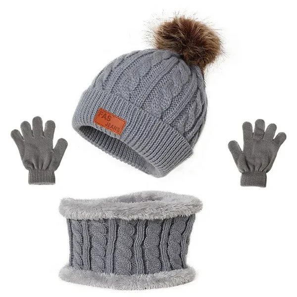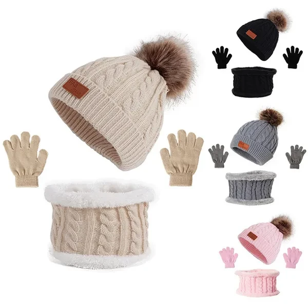 3 Pcs Winter Warm Baby Solid Color Hat Gloves Scarf Set Fur Ball Beanies Cap Mitten Scarves Kit for Toddler Girls Boys Knitted Hemming Hat CAX
