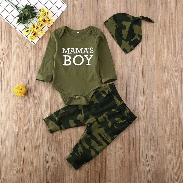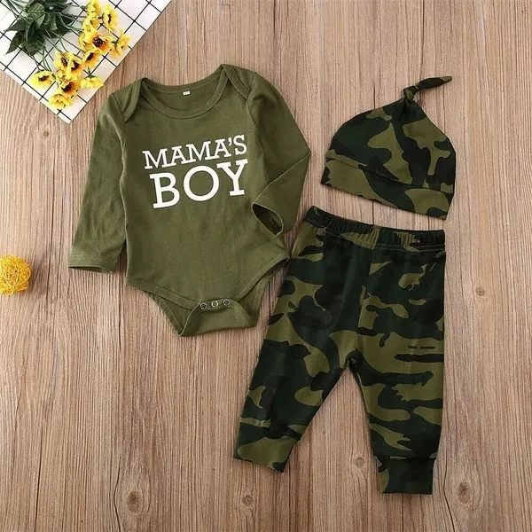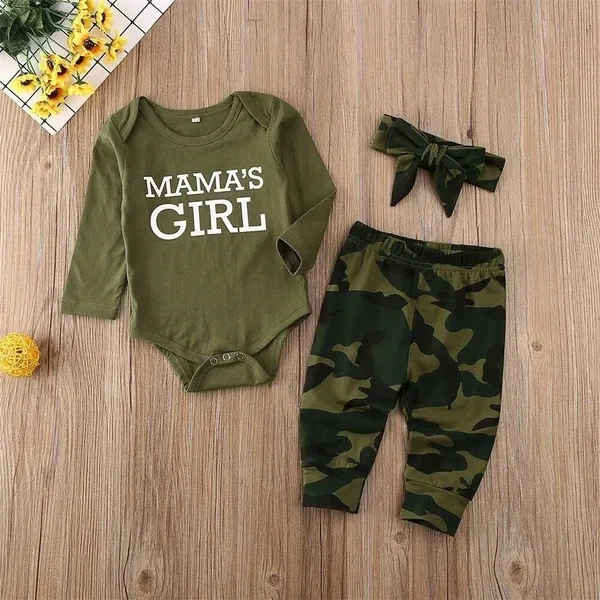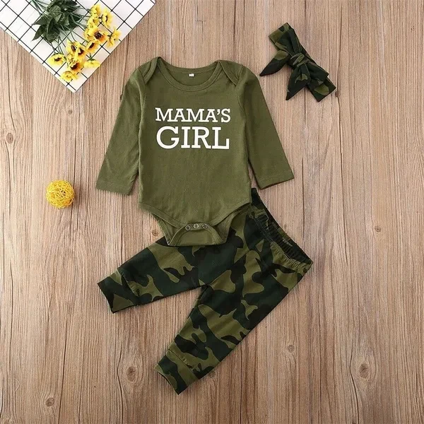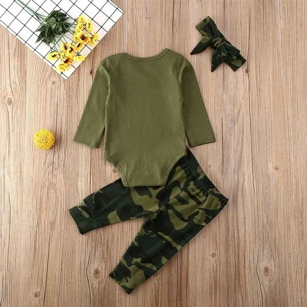 3PCS Newborn Baby Boy Girls Romper Bodysuit Top & Pants &Hat / Headband Camouflage Outfits Clothes 0-12M