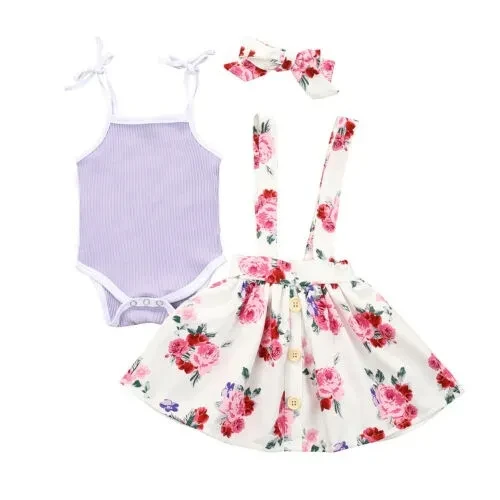 3PCS Newborn Infant Baby Girl Summer Princess Tops Romper Bib Skirt Dress Headband Outfits Clothes
