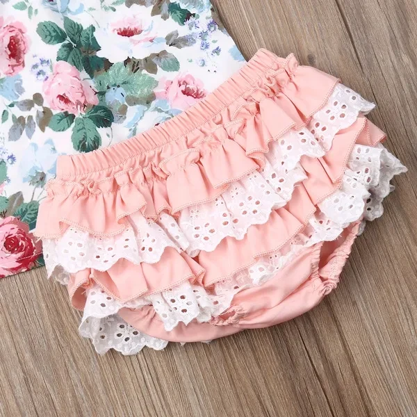 3PCS Toddler Kids Baby Girl Floral Tops PP Shorts Headband Outfit Clothes Set Summer