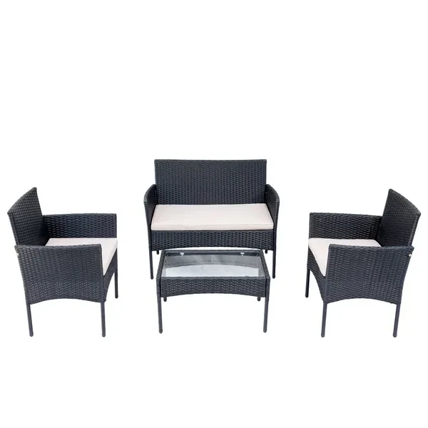 4 PCS Garden Furniture Set Conservatory Patio Outdoor Table Chairs Wicker Sofa