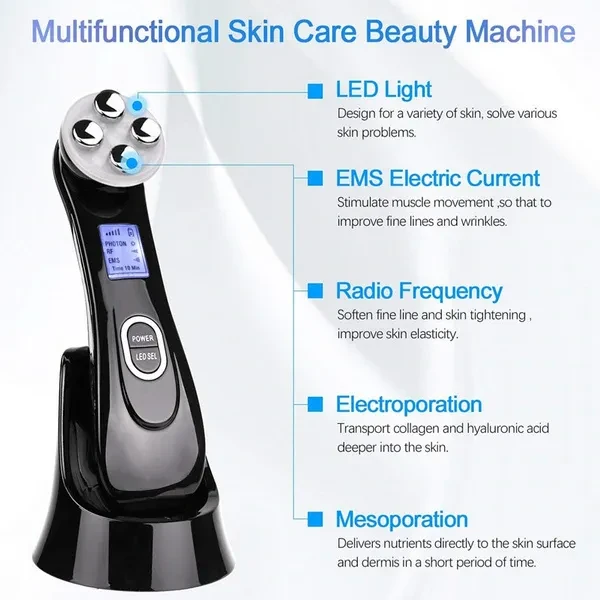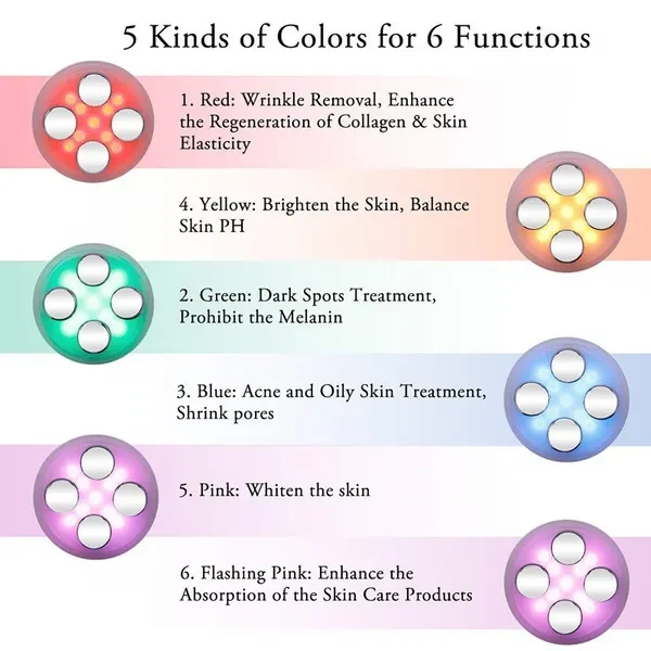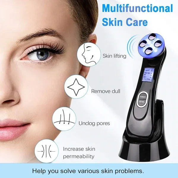 ??Face Massager Content: With box: 1*5 in 1 Face Massager(bulk pack ) 1*Base holder 1*USB cable 1*Use manual ??Face Massager Specification: Material: ABS Input: 100V-240V Output: DC5V500mA Battery capacity: 750mAh Power: Max 10W Charging time: 3.5 hours Use time: 10min/time Product size: 165*45*46mm Color:white,black,pink ??Face Massager Features: 1.It's interated with photon LED therapy,radio frequency(RF)/EMS and LCD display techology 2. It helps the skin to tighten, maintain elasticity, prevent allergies and other problems; 3. It can relieve muscle soreness, reduce skin fatigue, soothe skin tightness, reduce redness, swelling and pain of skin, and resist repeated growth of acne; 4. Stimulate the production of collagen, can help the skin quickly introduce a variety of skin care products, so that the skin doubles the absorption of nutrients. 5.It's a beauty care tool for beauty salon at home/office/trip ??Why buy our Face Massager ? 【5 in 1 Face Beauty Machine 】The LED light has 5 colors with 6 skin care functions that are suitable for various skin problems. Make your face more soft and get the tender skin. 【Solve Different Skin Problems】Focus on reducing wrinkles, skin lifting & tightening, anti-aging and promote the absorption of skin care products. No age and gender restrictions, no time and place restrictions 【Nutrition Lead-In】Use our skin care massager with your skin care product like mask, gel or cream, you will find the absorption effect is much better than the effect that use by hand. 【Portable & Exquisite】 Our portable face care massager is light , small and rechargeable. You can do your own skin care at home and do not need to spend money in beauty salon. 【USB Charging】Our face care massager can be used anytime, anywhere with an easy-to-use USB cable. Fast USB charging via PC,power bank or directly connecting to power source. ??Any inquiry to buy Face Massager ? If you have any dissatisfaction or doubt about our Face Massager , please contact us for the first time, and we will give you a satisfactory solution within 24 hours.