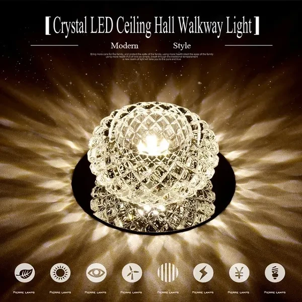 Bullet Point: No need to punch the installation, easy to install. High-quality crystal lampshade, aesthetic design, 360° sparkling light, high heat dissipation, guarantee electronic components. Constant current driver, built-in intelligent IC driver, placing voltage fluctuations to affect the lamp, extending the service life. Electroplating hardware chassis, metal plating process, not easy to rust deformation, strong endurance. Suitable for conference rooms, shops, supermarkets, exhibitions, dance halls, bars, kitchens, living rooms, bedroom use and other lighting and decoration. Specifications: Size: diameter 120mm/4.72inch, height 30mm/1.18inch (Approx.) Material: glass + stainless steel Color: warm white / white light Process: drilling, polishing Light source: LED5W Package Included: 1 x Modern Crystal LED Ceiling Light