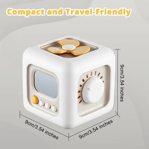 【6-in-1 Cognitive Toy】This interactive busy cube features six learning activities. 【Develop Skills】This activity cube strengthens parent-child bonds and enhances skills like hand-eye coordination, problem-solving, and concentration. It's designed with sensory learning in mind, inspired by Montessori principles, and can be especially helpful for children with Autism or ADHD. 【Compact and Travel-Friendly】With dimensions of 3.5 x 3.5 x 3.5 inches, this sensory busy toy is robust and impact-resistant,incredibly convenient for road trips and airplane travel. This brain-boosting activity game will keep your kids engaged and entertained for hours on the go. 【Handmade With Quality Care】Our sensory cube is crafted from non-toxic, BPA-free materials (ABS) with sanded edges to ensure your child's safety during hours of engaging play. Please note: Keep it clean by wiping with mild detergent and a damp cloth, and avoid prolonged exposure to direct sunlight. 【Gift-Worthy Choice】The lightweight and portable Busy Cube toy is a versatile gift choice. It's perfect for newborns, birthdays, Christmas, Thanksgiving, Easter, travel, and as a teaching aid. This makes it an ideal toddler travel companion and one of the best gifts for both little boys and girls.