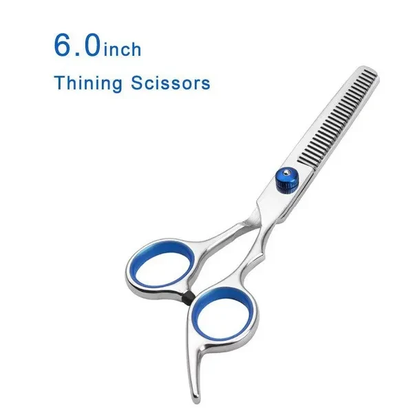 Material: 4cr13(Stainless Steel) Full length: 17cm 1Pcs Weight: 0.1kg Packing List : One Set Packing list 1pcs Up Curved Scissors 1pcs Down Curved Scissors 1pcs Thinning Scissors 1pcs Straight Scissors 1pcs Comb 1pcs Scissors Bag Features: Barbers use scissors to cut hair at home or in a salon Beauty kit for hair styling or pet grooming Made of high quality metal material, durable and powerful. Elegant appearance, durable, novel style. The ergonomic structure design makes your grip very comfortable and reduces your labor intensity.