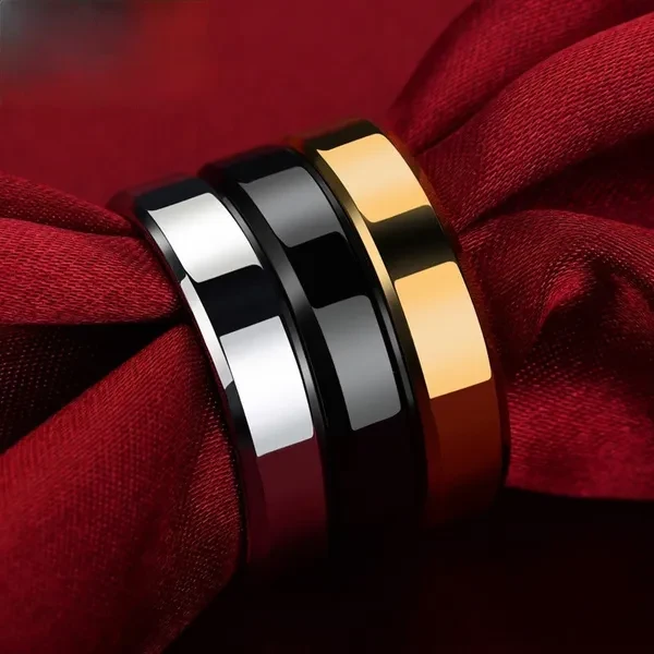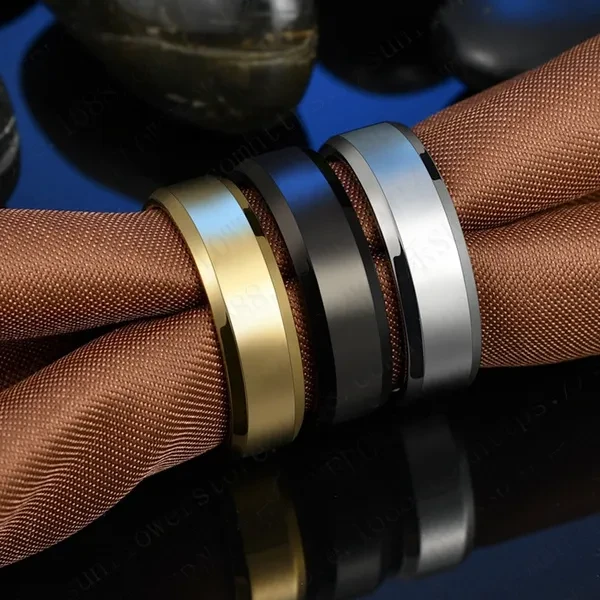 8mm Simple Charm Men Ring Smooth Stainless Steel Black Gold Charms Rings Wedding Couples Rings for Man or Woman Gift