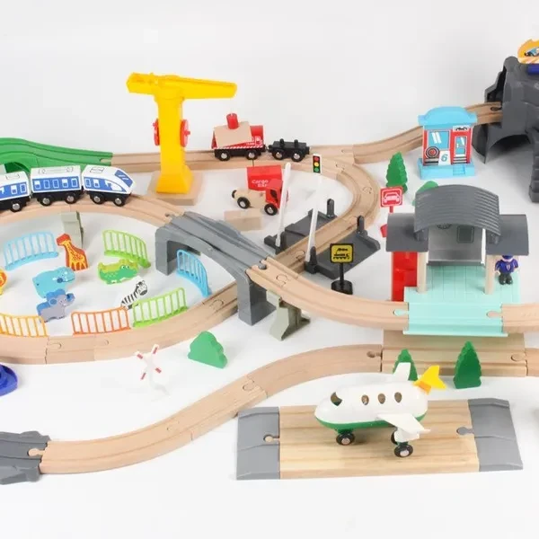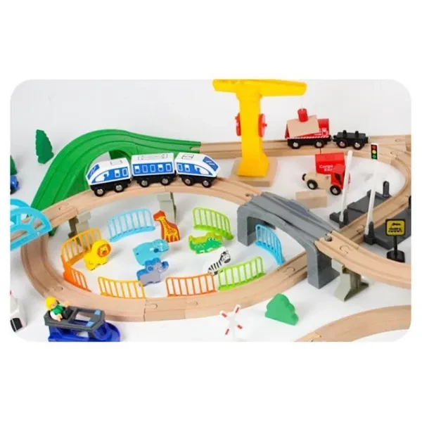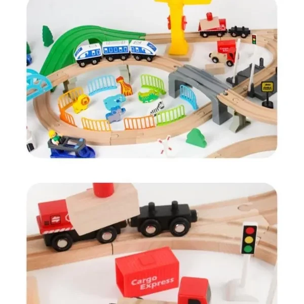 Brand: acool tol Ability development: Emotional, crawling, grasping, hand eye coordination, other ability development, interactive toys, parent-child communication Applicable audience: unlimited Featured function: Free assembly of wooden train tracks Packaging: Color box Origin: Zhejiang Applicable age: Children (4-6 years old) Toy material: wooden Is there an anime image: No Including remote control: No
