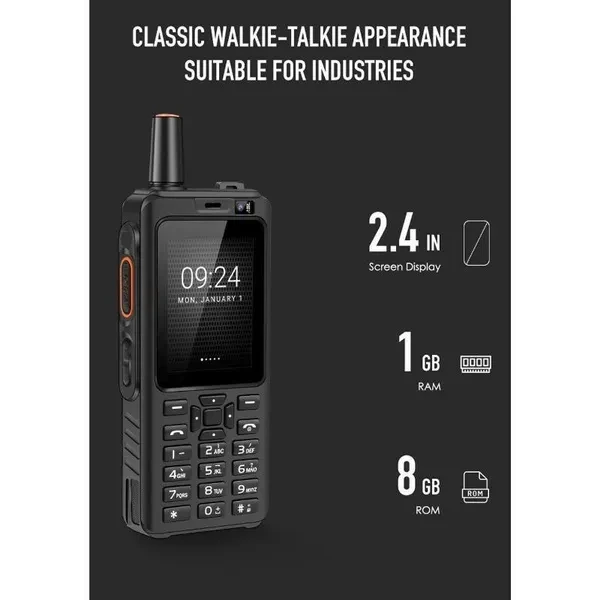 Intelligent intercom terminal device with 2.4-inch touch screen and 4G buttons, Android smartphone with ZELLO PTT network and software intercom function, support for downloading apps, black screen intercom, memory 1+8GB quadcore processor core, front and rear dual cameras supporting law enforcement recording, adding memory card to expand memory, supporting the use of third-party APP software or network intercom applications such as Taotao and Weila, and unlimited intercom distance, universal, let it go