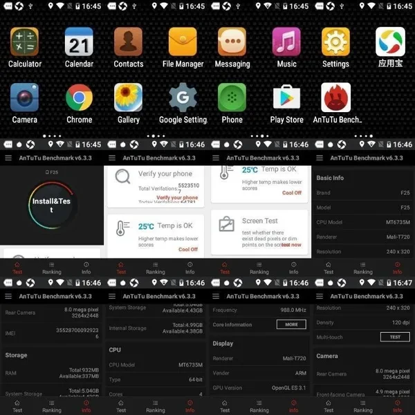 CPU MTK6737M Cortex A53 quad core, 1.1GHz; GPU: Mali-T720
