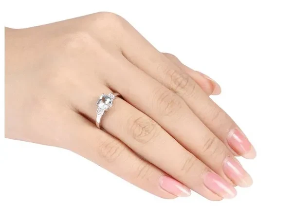 Aquamarine Ring 4/5 Carat (ctw) with Diamonds in Sterling Silver A beautiful square shaped glowing aquamarine .85 Carat (ctw) gemstone sits at the center of this sterling silver ring. Beautifully crafted in 0.925 sterling silver with a Polished Finish Stone Type: Aquamarine; Color: Blue; 0.85 CTW; Quantity: 1; checkerboard-cut Cut; Cushion Shape; Dimensions: 6 x 6 mm; Natural; 4-Prong Setting Stone Type: Diamond; Color: G-H; Clarity: I1-I2; 0.04 CTW; Quantity: 2; Brilliant Cut; Round Shape; Natural; 4-Prong Setting Aquamarine Gemstone is the Birthstone for the Month of March This Diamond Ring is the perfect gift for any birthday, anniversary, holidays, thank you, thinking of you, or for any reason at all SKU: 68DLG9458AQ-P