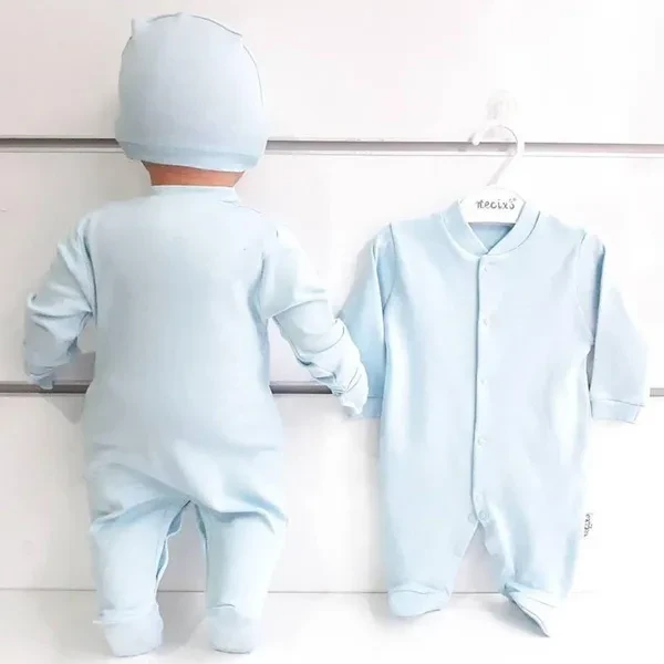 Baby Jumpsuit with Simple Beanie Gloves - Blue