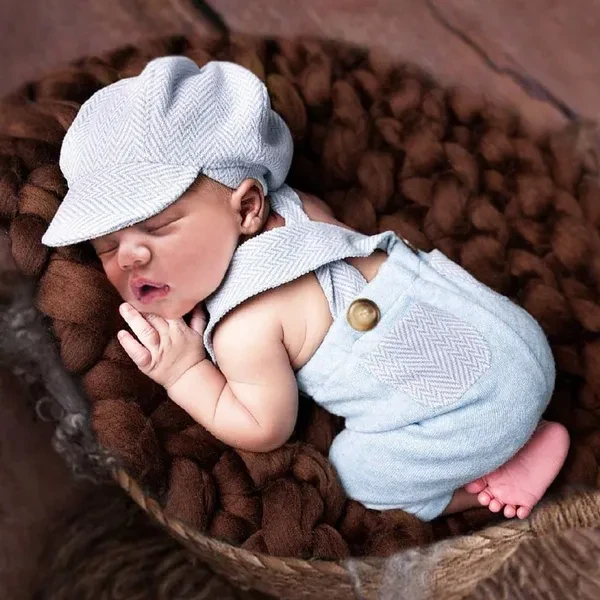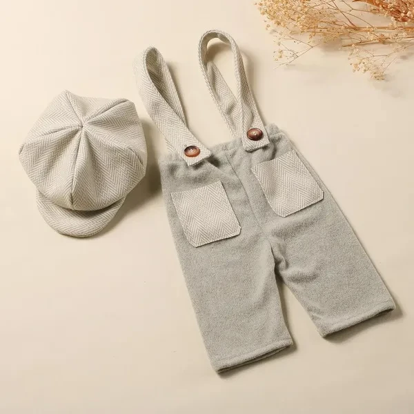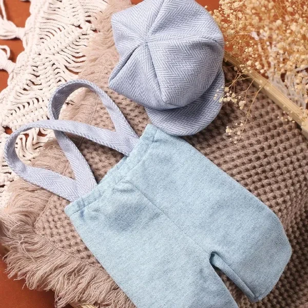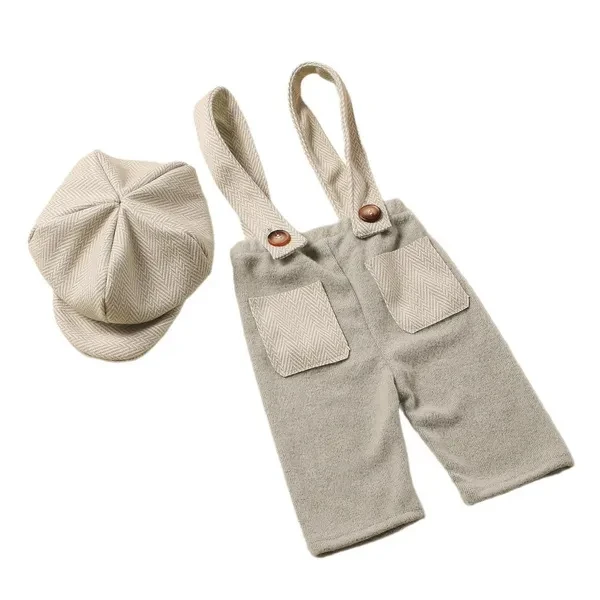 Baby Photography Costume Clothing Curved Brim Hat and Romper Photo Clothes Photography Props for Infant 0-1 Month