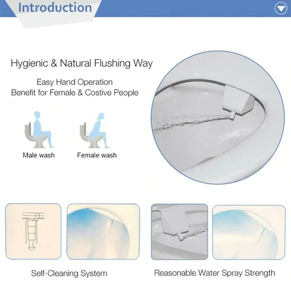 Features: - Hydraulic toilet seat bidet is more safe advancer and convenient - Purify your body through a hygienic and therapeutic way - The smooth water sprays bring you a shower feels after using fresh - Keeping clean, staying healthy - No electricity or battery required - All accessories included, easy and quick self-assembly in minutes - The toilet can be installed - The installation instructions are on the back of the packaging - Using a sanitary bidet can relieve the irritation of the hemorrhoids and help with constipation through stimulating bowel movements Specification: Material: ABS Color: White Mounting: Wall Mounting Connector Type: G1/2 Package Includes: 1 x Smart Toilet Seat Bidet Set Note: 1. Due to computers display colors differently, the color may vary slightly from the above images, Thanks for your understanding! 2. Manual measured, please allow 2-4mm error 3. You have any questions, please feel free to contact us, we will reply as soon as possible and help you solve them!