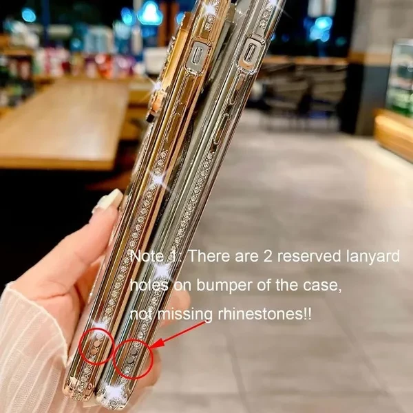 【Compatible Model】:This beautiful and luxurious magnetic case is only Compatible for iPhone.Note:The two holes on the right side of the case frame are not missing rhinestones,it's specifically reserved for the use of lanyards.