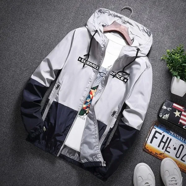 Bomber Hooded Patchwork Jacket Men Casual Slim Windbreaker Jacket Thin Male Outwear Zipper Coat Brand Hot Spring Autumn Clothing