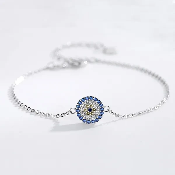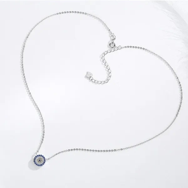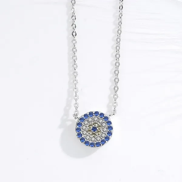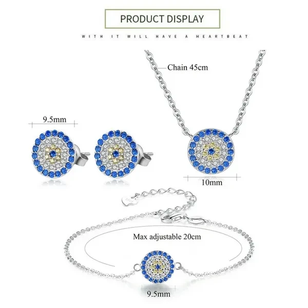 Bridal Jewelry Sets 925 Sterling Silver Necklace Women Earrings Bracelet Blue Zircon Round Evil Eye Turkish Jewelry Set