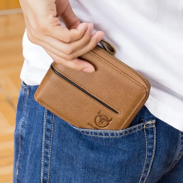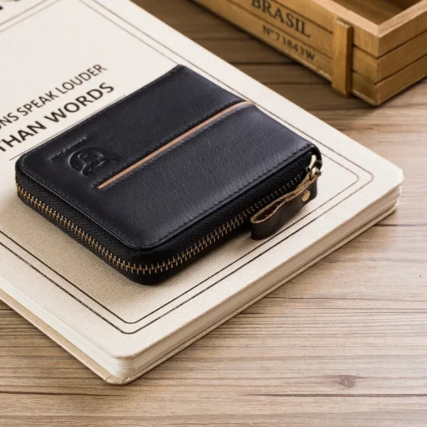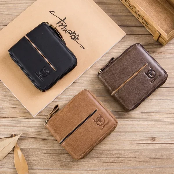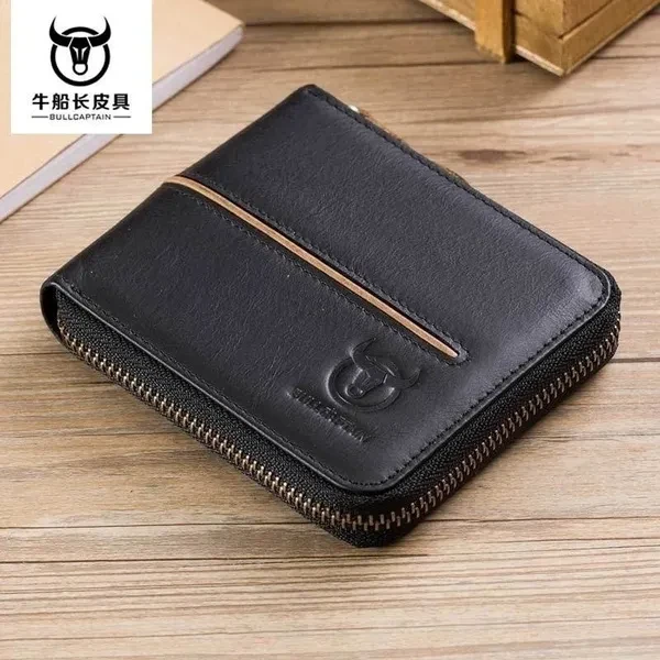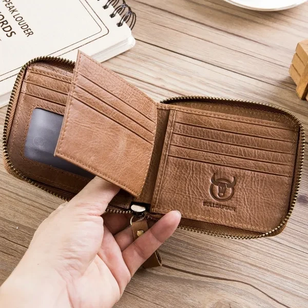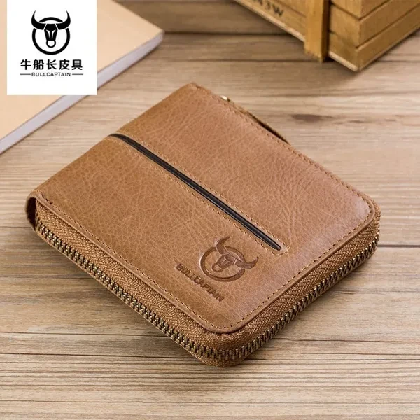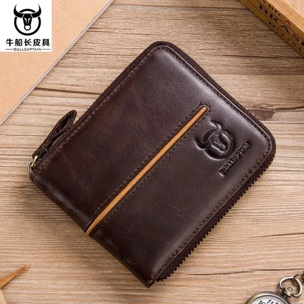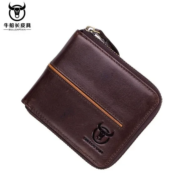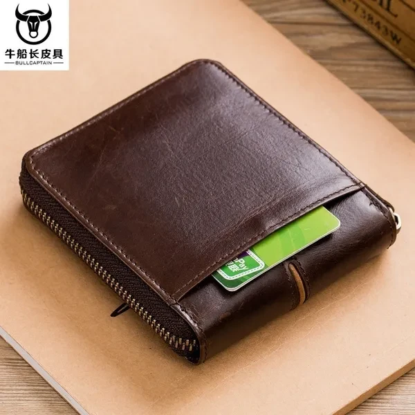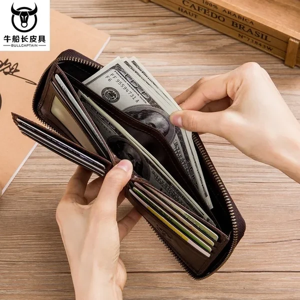 BULLCAPTAIN Leisure Genuine Leather Men Wallets Credit Business Card Holders Zipper Cowhide Leather Wallet Purse