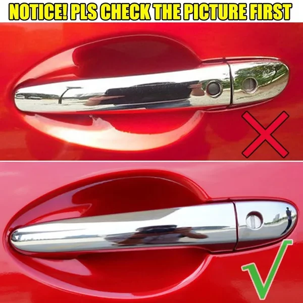 For Mazda2 (DJ/DL) 2015-2020 For Mazda3 (BM/BN) 2014-2018 For Mazda6 (GJ/GL) 2013-2020 For Mazda CX-3 (DK) 2016-2020 For Mazda CX-5 (KE/KF) 2013-2020 For Mazda CX-9 (TC) 2017-2020 Not Fit Right Hand Drive Models Not Fit Models With Smart Key/intelligent key/Promixity Key/Keyless Entry Composition: 8Pcs Without Passenger Side Keyhole Without Keyless Entry Holes Color: Chrome Shiny Finish Material: Chrome Plated ABS Plastic Feature: Easy installing, 3M adhesive tape is at the back. 100% Waterproof. Never Fade, Never Rust. Provide eye-catching show off and personalize your car. Please note that please use the heat gun to warm up the adhesive tape before installed, to make the item stick tightly
