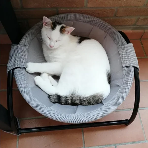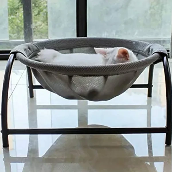 Features: 1. Hollow fabric hammock, heat dissipation and comfortable for pets to sleep 2. The bed can be disassembled and assembled, the storage is super simple, and the cleaning is very convenient 3. Rocking chair, sleeping bag, hammock, new and fun, cats play and sleep together 4. Three colors can be selecte to meet the preferences and needs of different people 5. The best gift for your pet Specifications: Material: fabric metal Size: 43cm/16.93\"*43cm/16.93\"*24.5cm/9.65\" Color: pink, gray, white Package Included:1pc * pet hammock bed Note: 1. Due to the light and screen difference, the item'