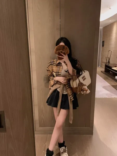 ---Burbe ^ ry limited edition checked pattern long-sleeved shirt, a must for temperament Classic models that can be worn all year round~ Easy to get lazy on the street style Plaid elements age reduction playfulness is also very daily Easy to match, effortless fashion sense Size: F F: Bust 108 Length 73