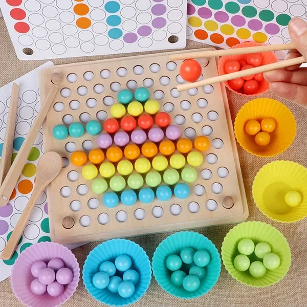 Features: 【Preschool Learning】It can help train the toddler kids ability to recognize colors and shapes, increase observation and logic ability and hand-eye coordination. 【High Quality】Made of natural wood and stained with non-toxic water-based paint, this matching beads game is no rough or sharp edges, durable. 【Basic Life Skills】 It provides multi-fun gaming as: 1. Chopsticks exercise; 2. Clip training; 3. Spoon training; 4. Color cognitive classification exercise, encouraging the child's brain development. 【Customer Service】 If you have any questions about our wooden sorting toy, please feel free to contact us and we will be available to answer any questions at any time. 【Warm Note】Please let children play this wooden board bead game with adults,which contains beads and other small parts.Please do not let children play alone. Specification: Material: Wood Size: as picture shows Package Includes: 1x Clip Ball Wooden Peg Board note: Please allow 1-2cm errors due to manual measurement. Due to the difference between different monitors, the picture may not reflect the actual color of the item. </p>