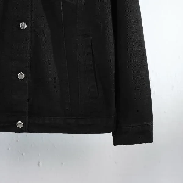 The same style as the Internet celebrity star, heavy industrial washed fabric, brand letter buttons, the back of the warhorse letter and the brand letter three-dimensional embroidery density texture is full and well-proportioned, and the feel is very comfortable. A super versatile and beautiful coat. Customized hardware, three standards are complete, the same style for men and women Compare at will. The quality is absolutely guaranteed. Color: Black Size: S M L XL
