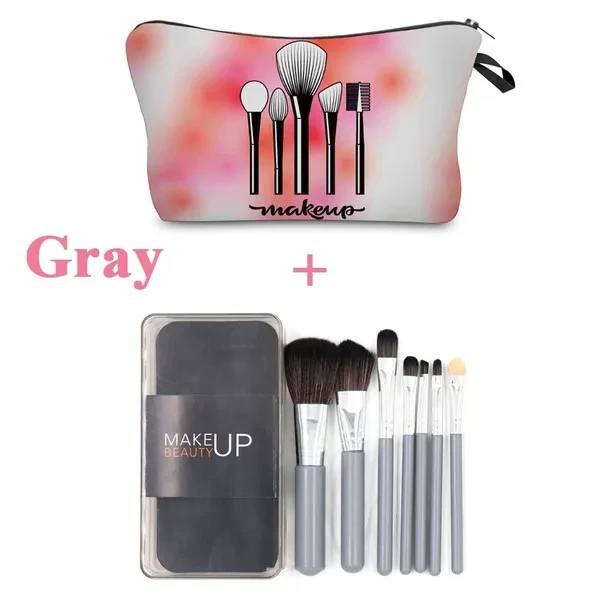 Product portfolio: 1 storage bag + 7 makeup brushes Makeup brush color: pink, gray, purple Storage bag color: pink The interior of the storage bag is huge enough to hold small items such as cosmetics. Stylish and beautiful. 7 makeup brushes can satisfy any makeup technique, and the bristles are soft and durable.