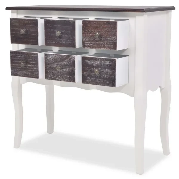 Console Cabinet 6 Drawers Brown and White Wood Kommode Dressoir Commode
