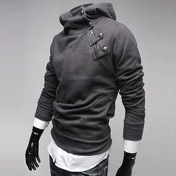 Cool Design Hoodies Men Sudaderas Hombre Hip Hop Mens Brand Fur Collar Metal Buckle Hoodie Sweatshirt Suit Slim Fit Men Hoody