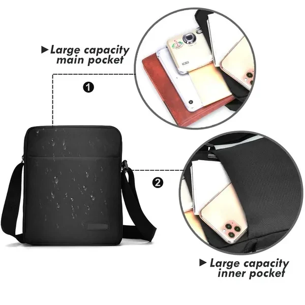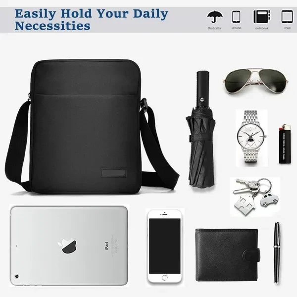 Specs: Material: Soft Polyester Dimension: 9.8 X 7.9 X 2.2 inch / 25 X 20 X 5.5 cm Weight: 0.6 lb / 0.27 kg Gender: Unisex Small Crossbody Bag Style: Fashion/Casual/Sport Multi-purpose: Can be a Single Shoulder Bag or a Crossbody Bag Features: Material: This men’s messenger bag is made of high quality lightweight soft nylon fabric, durable enough and comfortable to touch Capacity: The main pocket can hold 9.7 inch tablet, 6 inch phone, wallet, books, folders, power bank, sunglasses, small umbrella etc; The front pocket can hold cards, passports etc Adjustable: The crossbody bag comes with an adjustable shoulder strap(22-43 inches), which makes it possible to be a messenger bag, a shoulder bag or a crossbody bag Classical: The classical look of this casual bag will never out of style, it is a best gift for your families, friends, neighbors, coworkers etc Applications: Perfect for traveling, shopping, camping, climbing, hiking, hunting, trekking, tactical, cycling, outdoor