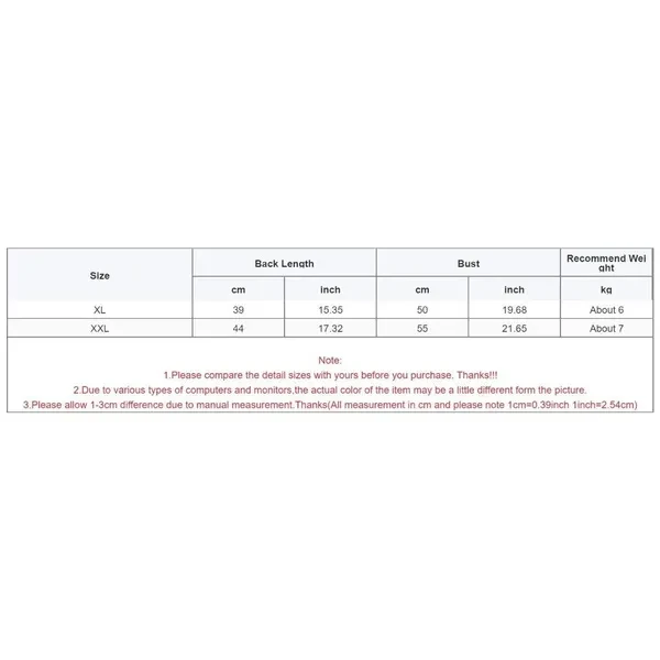 Features: Keep your pet warm and stylish with this thick leopard print pet coat. The unique leopard coat costume makes your pet the highlight of the Christmas party. Please carefully measure your pet's head and neck circumferences before purchasing. Exquisite stitching, washable, easy to clean, durable and easy to maintain. Get ready for parties or themed gatherings with this fashionable costume. Perfect for outdoor activities in the winter, such as walks and runs, providing warmth for your pet. It can also be used as a stylish indoor outfit, keeping your pet comfortable at home. Specifications: Material: Cloth Size:XL Back Length:39cm(15.35inch) Bust:50cm(19.68inch) Recommend Weight:About 6kg Size:XXL Back Length:44cm(17.32inch) Bust:55cm(21.65inch) Recommend Weight:About 7kg Note: 1.Please allow 1-2cm errors due to manual measurement, make sure that you do not mind before you order. 2.Due to the differences between different monitors, the picture may not reflect the actual color of the item. Package includes: 1x Pet Coat